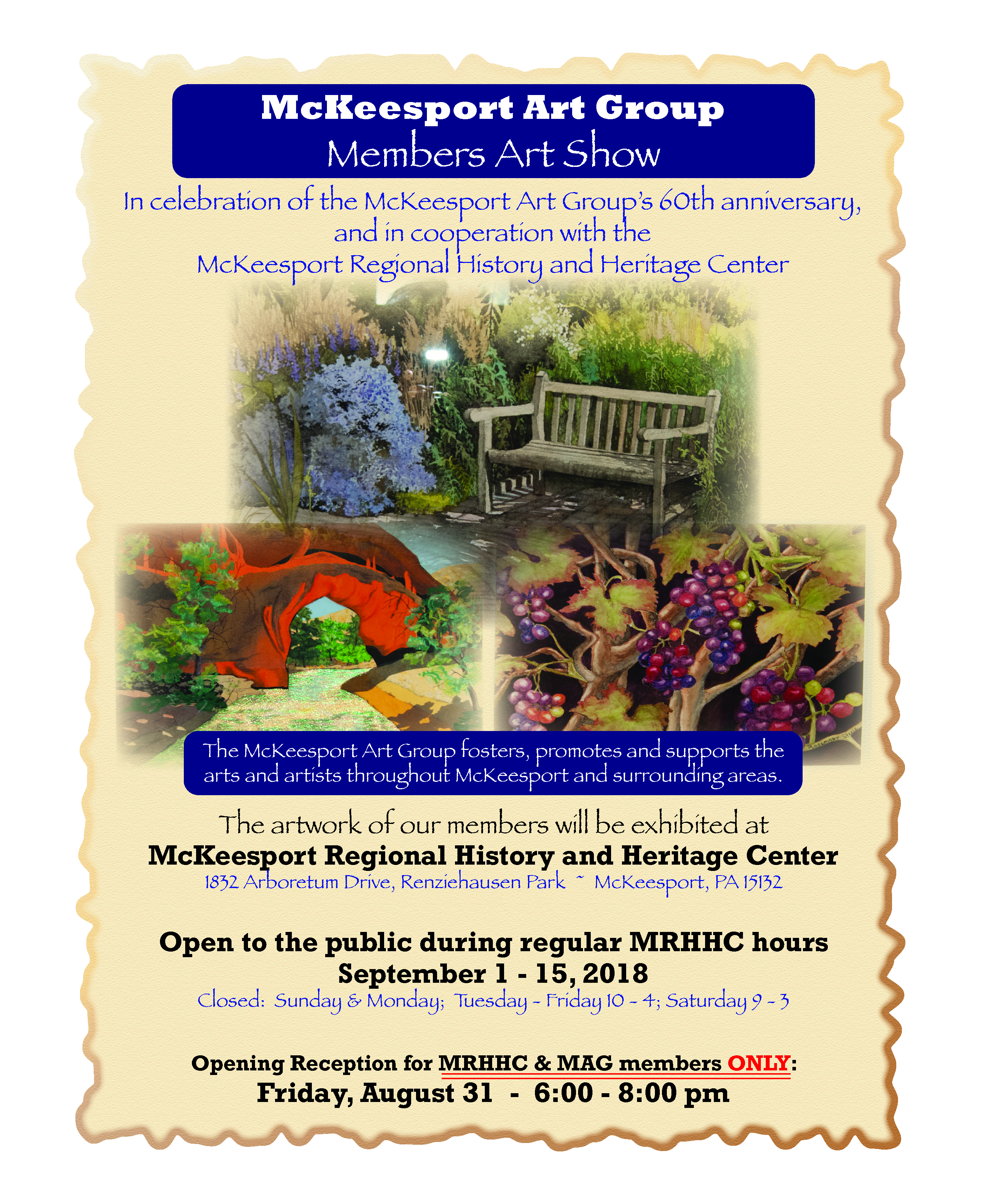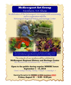 Members Only Art Show at McKeesport Regional History & Heritage Center Posted byfancy.creations@yahoo.comAugust 10, 2018Posted inUncategorized Share this: Click to share on X (Opens in new window) X Click to share on Facebook (Opens in new window) Facebook Like Loading... Related Published by fancy.creations@yahoo.com I am an artist and photographer, and a member of the McKeesport Art Group. View more posts