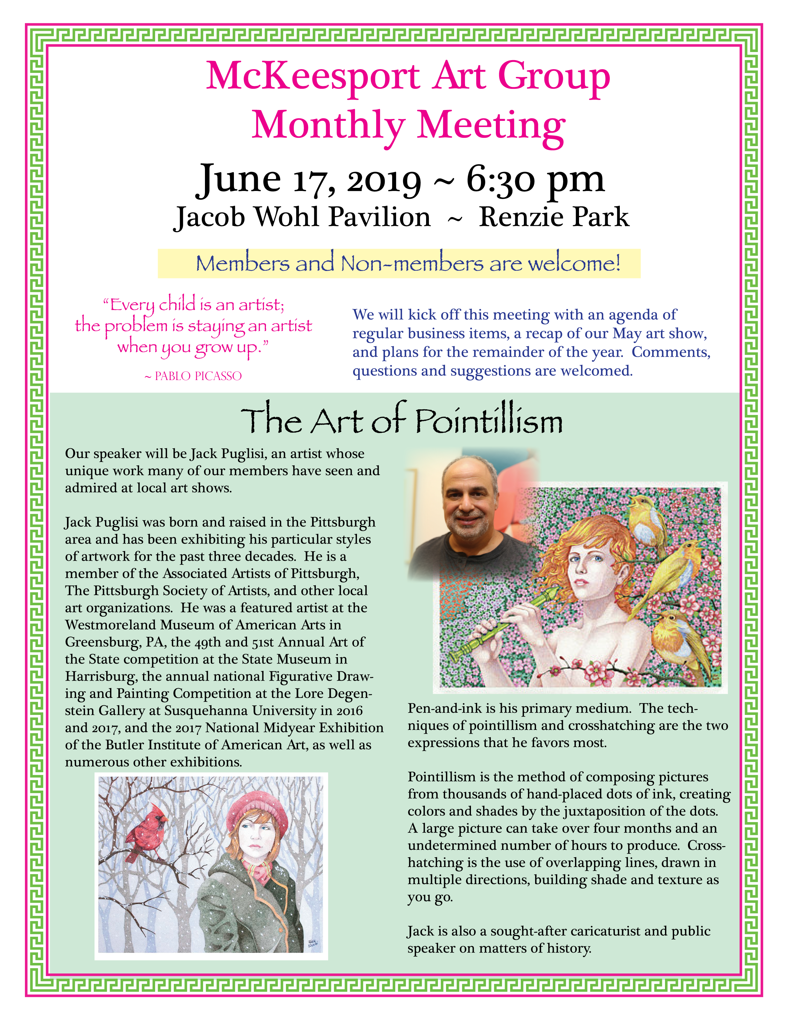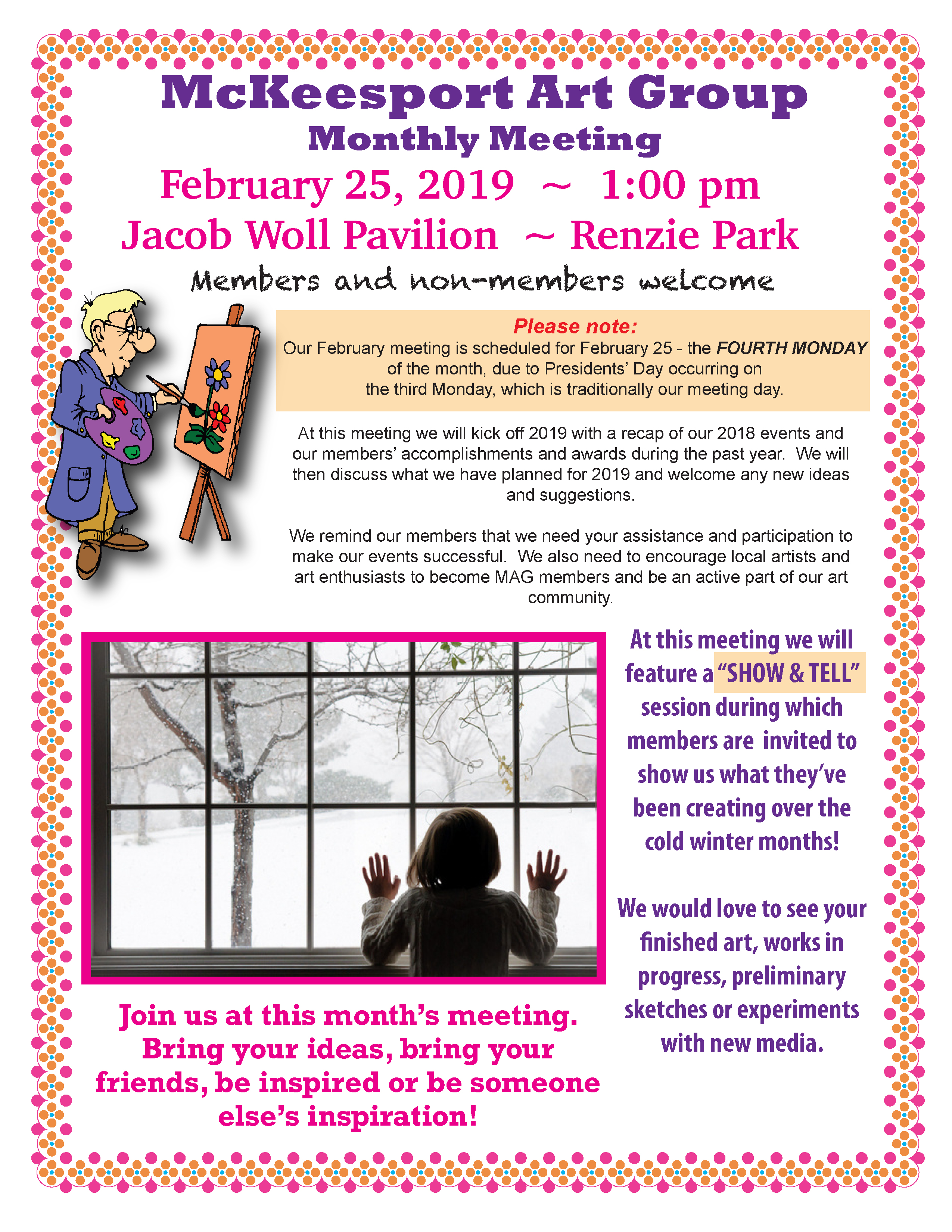 The McKeesport Art Group was honored to receive First Place in the “Adult – Creative” category at the 2018 McKeesport Festival of Trees. The group strives to create a unique and beautiful entry every year, and this year was no exception. Our wonderfully talented member Marilyn Wagner not only designed the tree, but she also hand-sculpted the caroling figures and made their clothes, as well as the musical note garland.